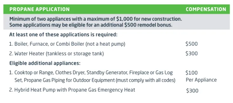 Remodel projects that replace a heating oil- or electric-powered appliance with a propane appliance may be eligible for an additional $500.